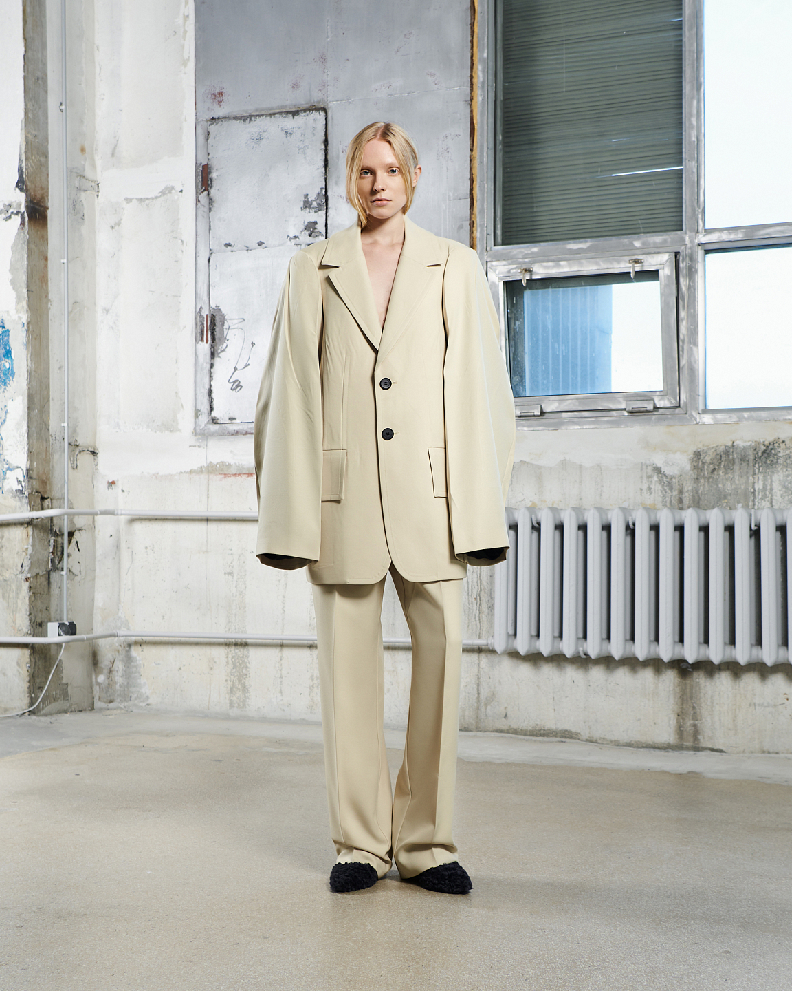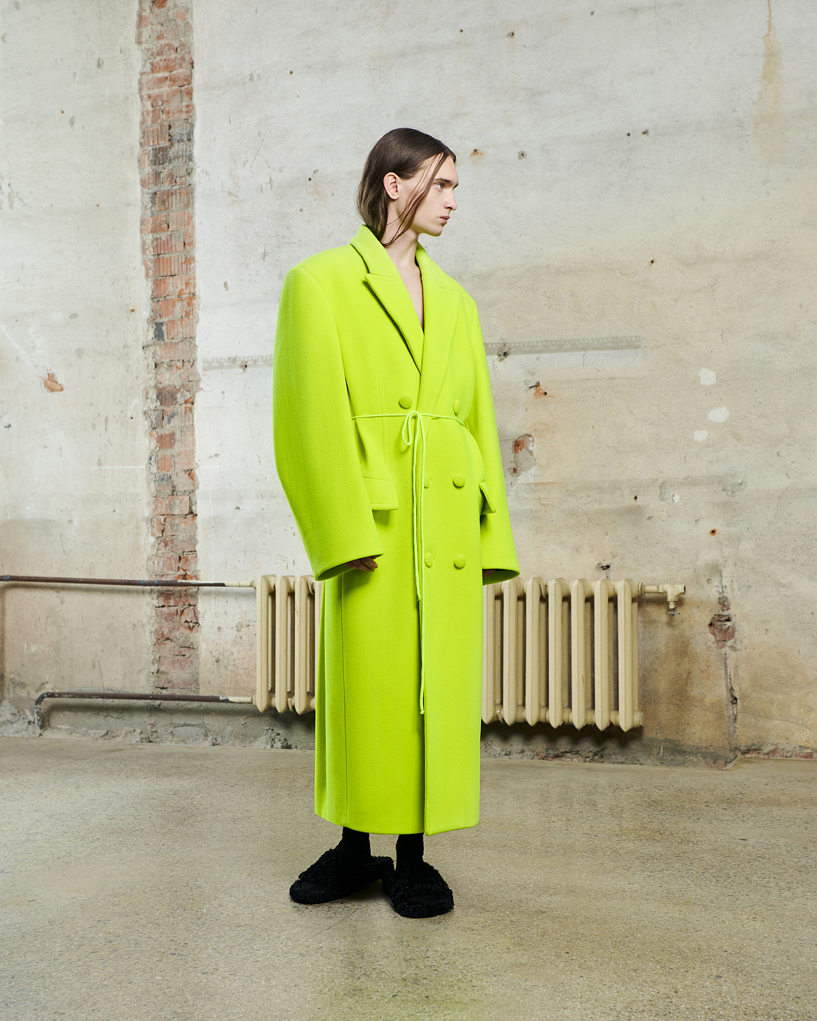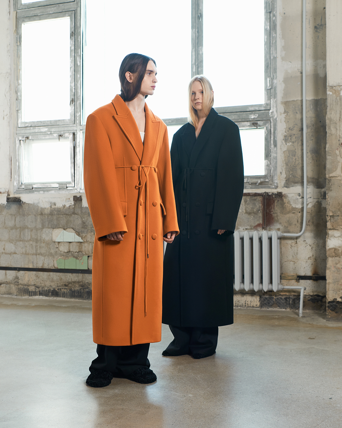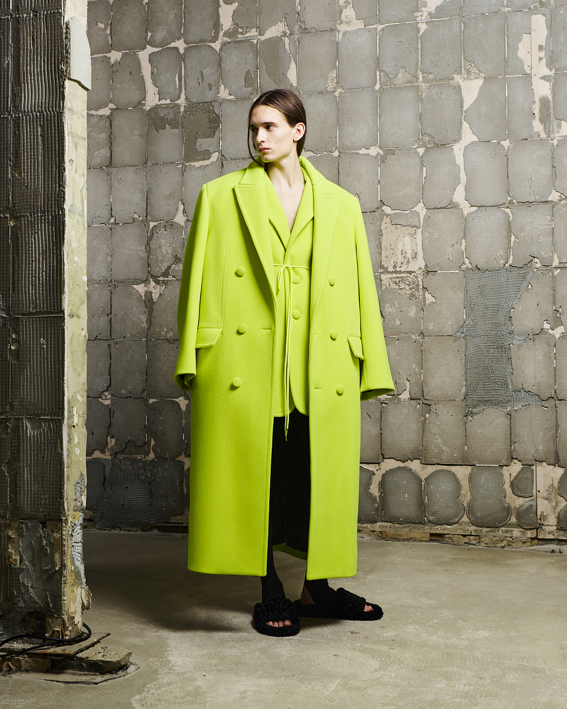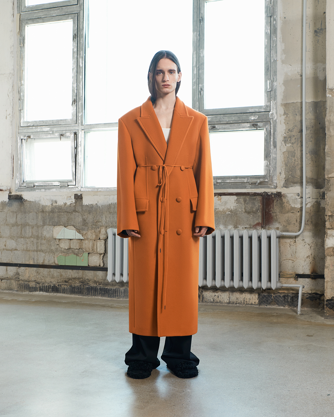 Но семантика слова «освобождение» подразумевает, что ему предшествовала несвобода. И эта тема, разумеется, тоже проходит лейтмотивом через Color.Block. Весь плоский крой в коллекции был придавлен прессом. Так появились чувственные складки и заломы на пиджаках, брюках, тренчах, платьях и юбках с экраном. Эти следы — своего рода напоминание о том, через что человек проходит, прежде чем стать свободным.