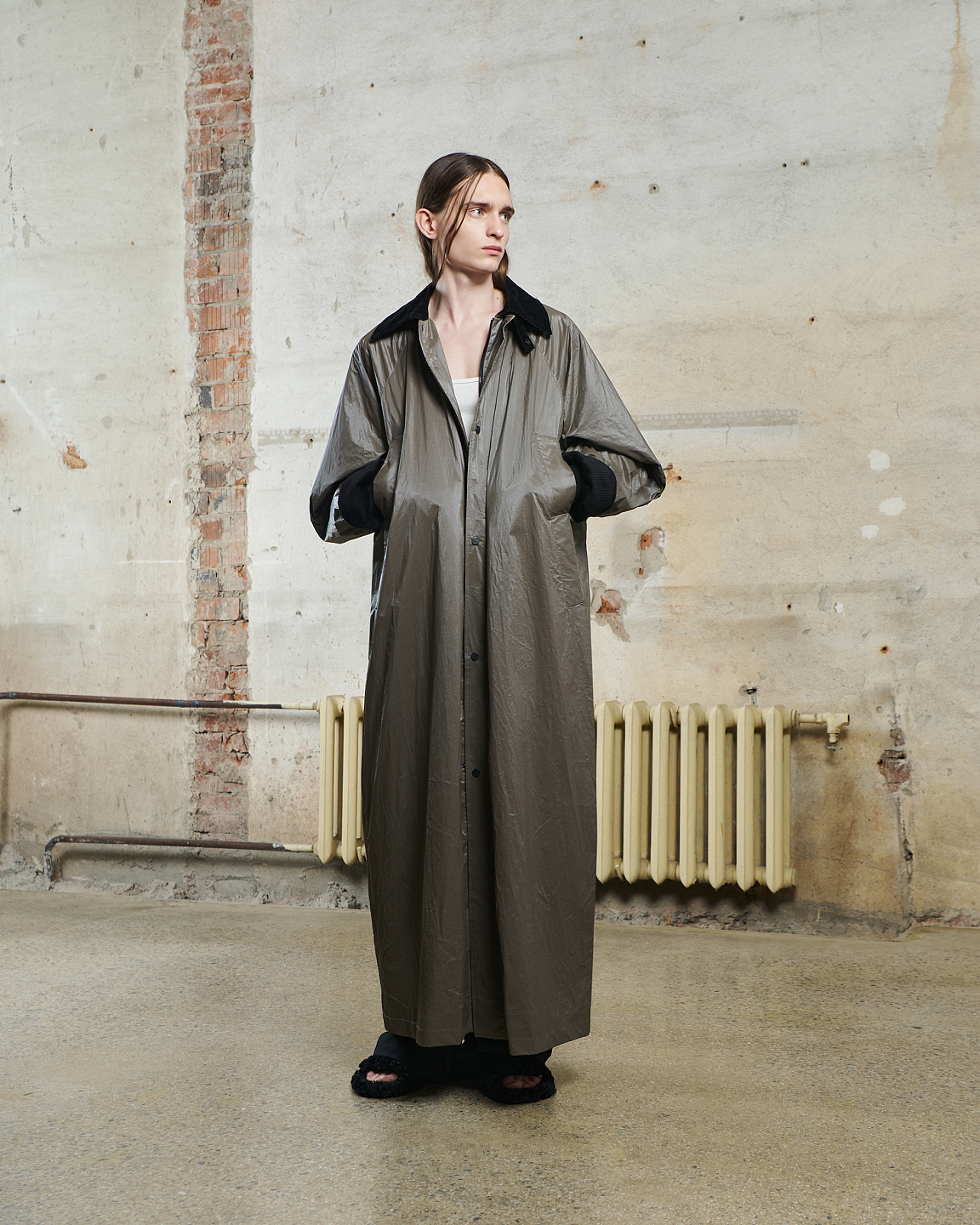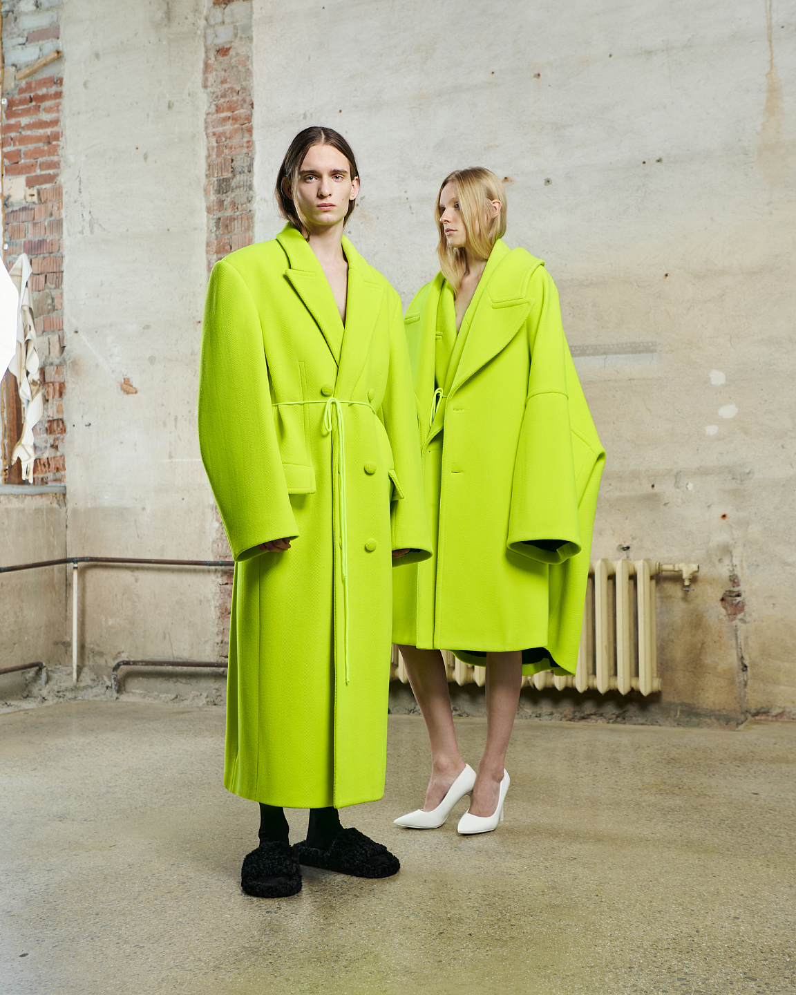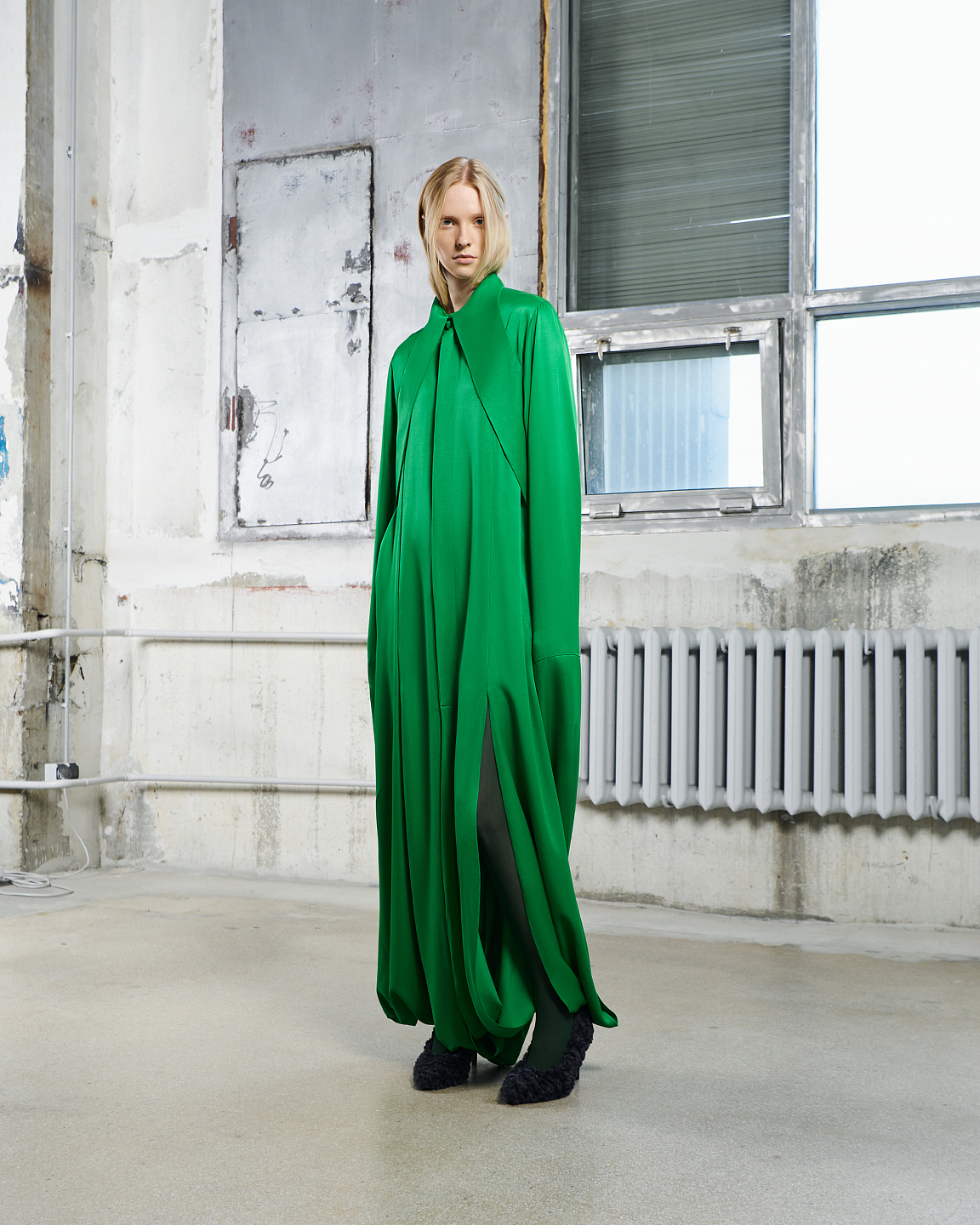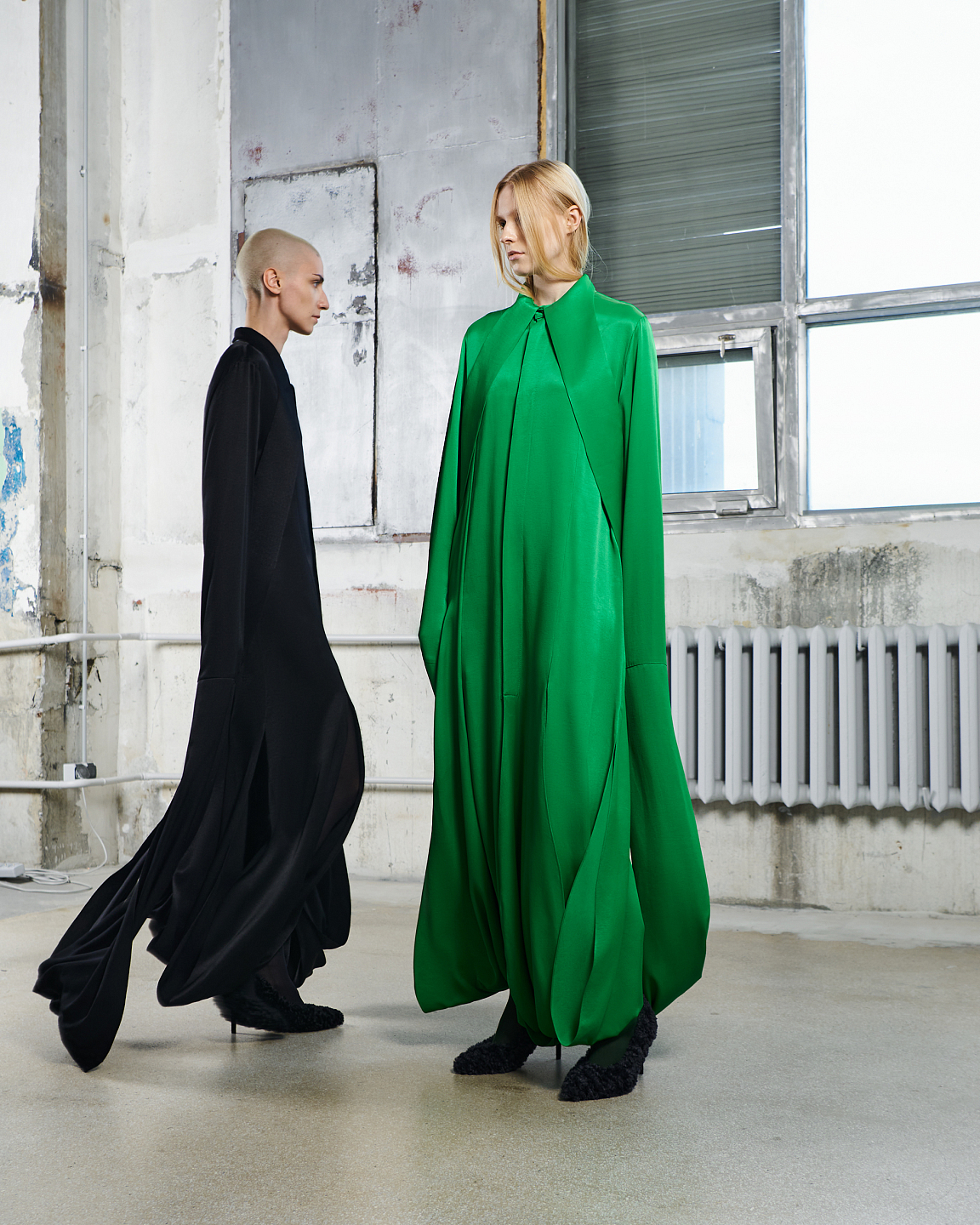 Нино вспомнила и о том, как три года назад она предложила Санану Гасанову, выпускнику антверпенской Королевской академии изящных искусств, стать со-креативным директором модного Дома. Это решение удивило команду бренда (У Санана был другой бэкграунд и подход к работе), но оно было волевым. В первые недели знакомства Санан преподнес Нино подарок — бумажное платье с принтом ковра, с большим бантом и бахромой. Он сшил его всего за одну ночь, и это был чистый поток творческой энергии. В Color.Block Нино преподносит Санану ответный подарок: платья, топы, юбки, тренчкоты, брюки, рубашки и тренчи, выполненные из нетканого тайвека и самой обыкновенной бумаги. Это оммаж платью-ковру.