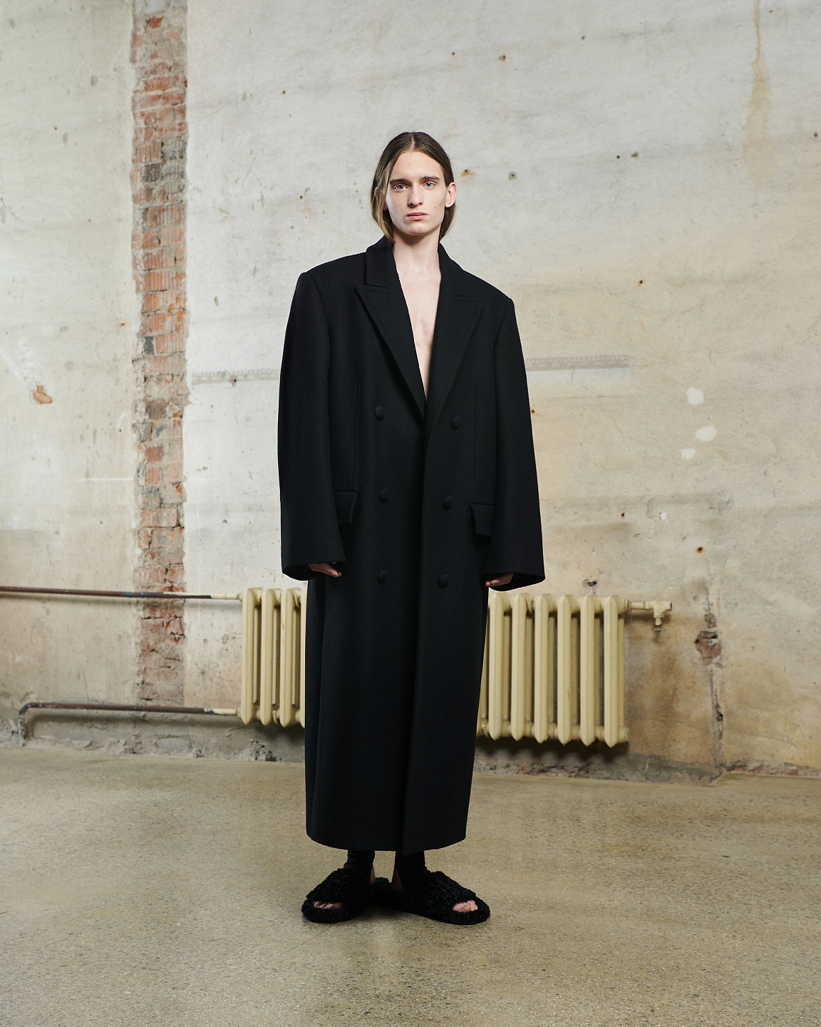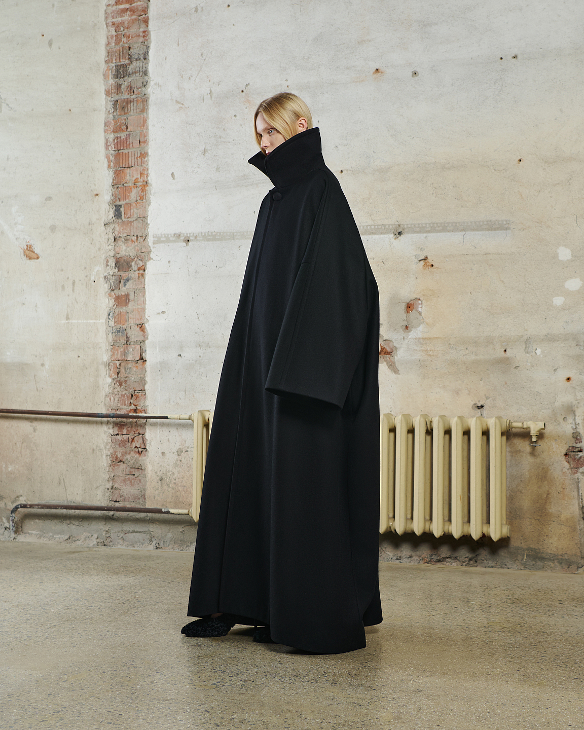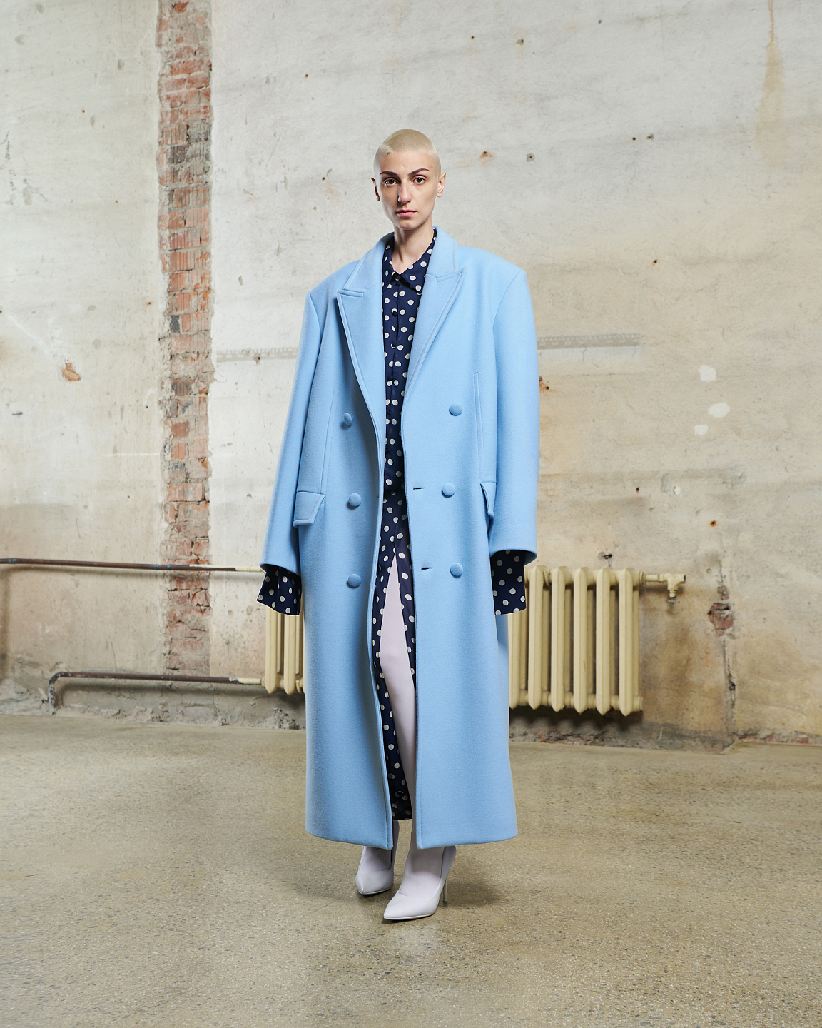 Санан же, размышляя на тему творческого самовыражения, обратился за референсами к западному кинематографу середины прошлого века — в 1950-х образ женщины в кино стал как никогда разнообразным. Женщина на экране получила возможность быть яркой личностью, и эти личности разительно отличались друг от друга. Мэрилин Монро стала иконой разнузданной сексуальности, Дебби Рейнольдс — веселой домохозяйкой по соседству, а Одри Хепберн — легкомысленным, очаровательным и безнадежно романтичным идеалом. Эти архетипы в некоторой степени нашли свое отражение в Color.Block — как и силуэты, важные для моды того времени. Безукоризненно женственные, мягкие и очень выразительные, они вылились в группу пальто под названием 50’s. Все они устремлены к А-силуэту — редкому для Ushatava в разрезе истории, но по иронии очень близкому к форме того самого первого топа. Связь с серединой прошлого века не ограничивается одним только кроем — пятидесятнический принт «горох», когда-то украсивший жаккардовый топ Нино, тоже переносится в новую коллекцию.