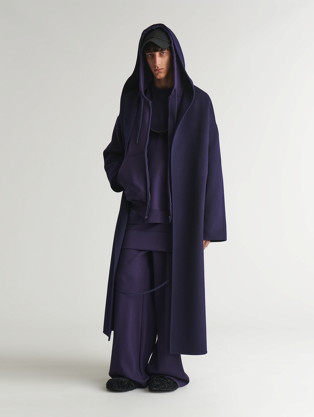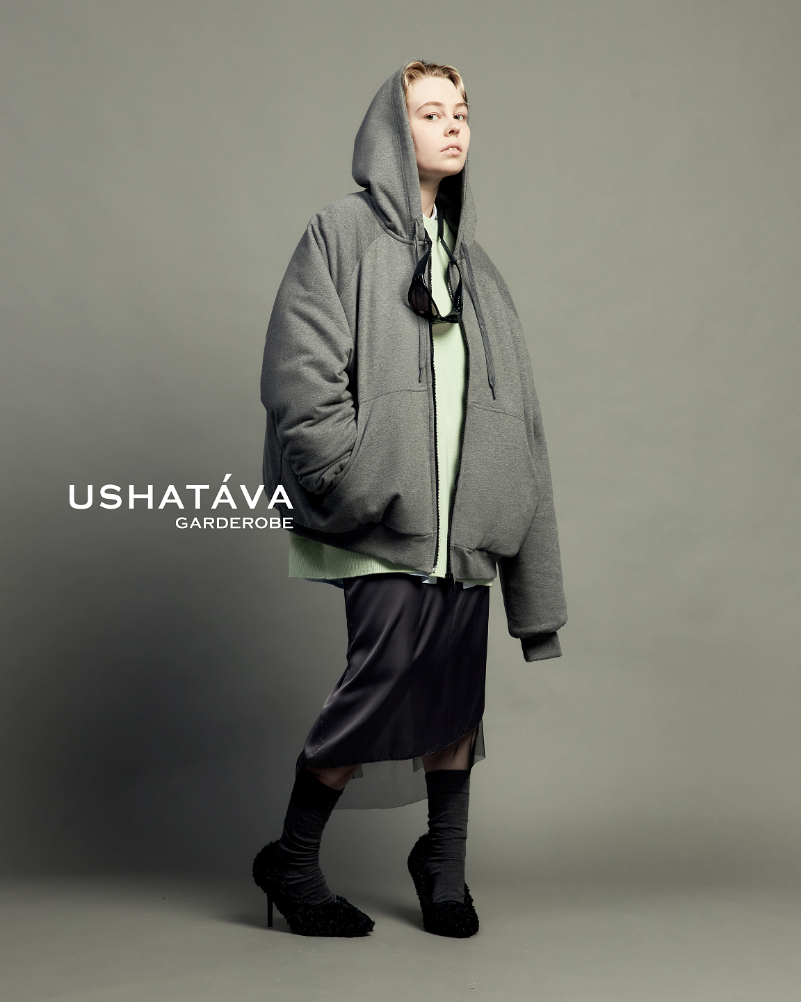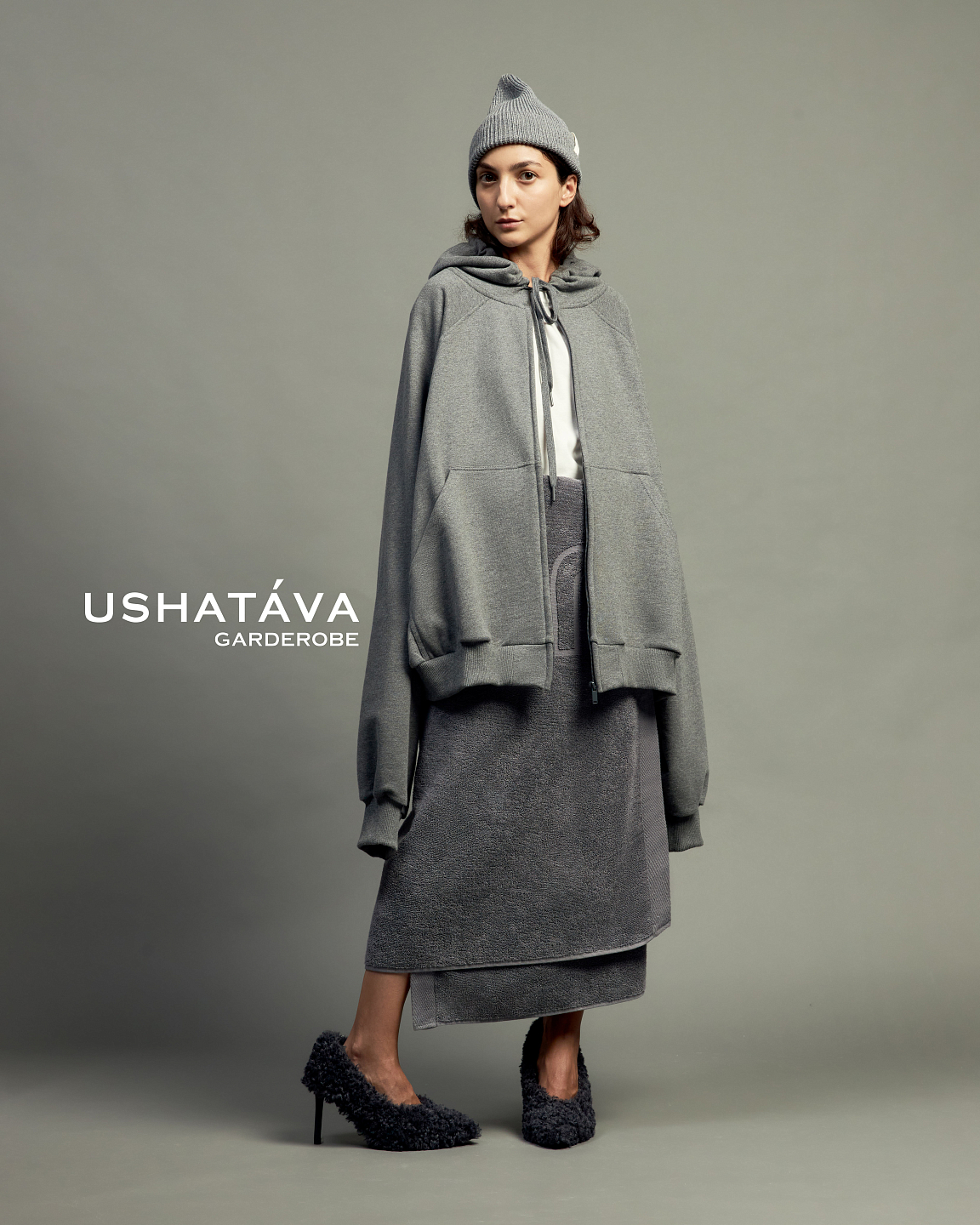 В сезоне FW23/24 GARDEROBE держит фокус на верхней одежде — один и тот же силуэт фигурирует в нескольких длинах, появляются двухсторонние пальто, новые тренчкоты, утепленные анорак и олимпийка. Одна из ключевых групп сезона — многофункциональные вещи-подложки, которые можно носить и как нижний слой, и как верхний. Также в сезоне присутствует новый для USHATÁVA цвет — чернильный, — и он проходит почти сквозь все категории вещей.