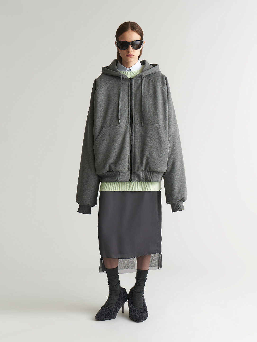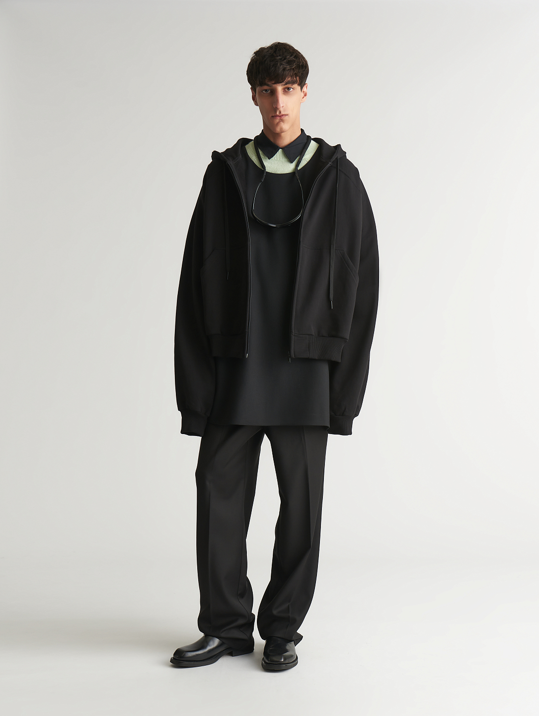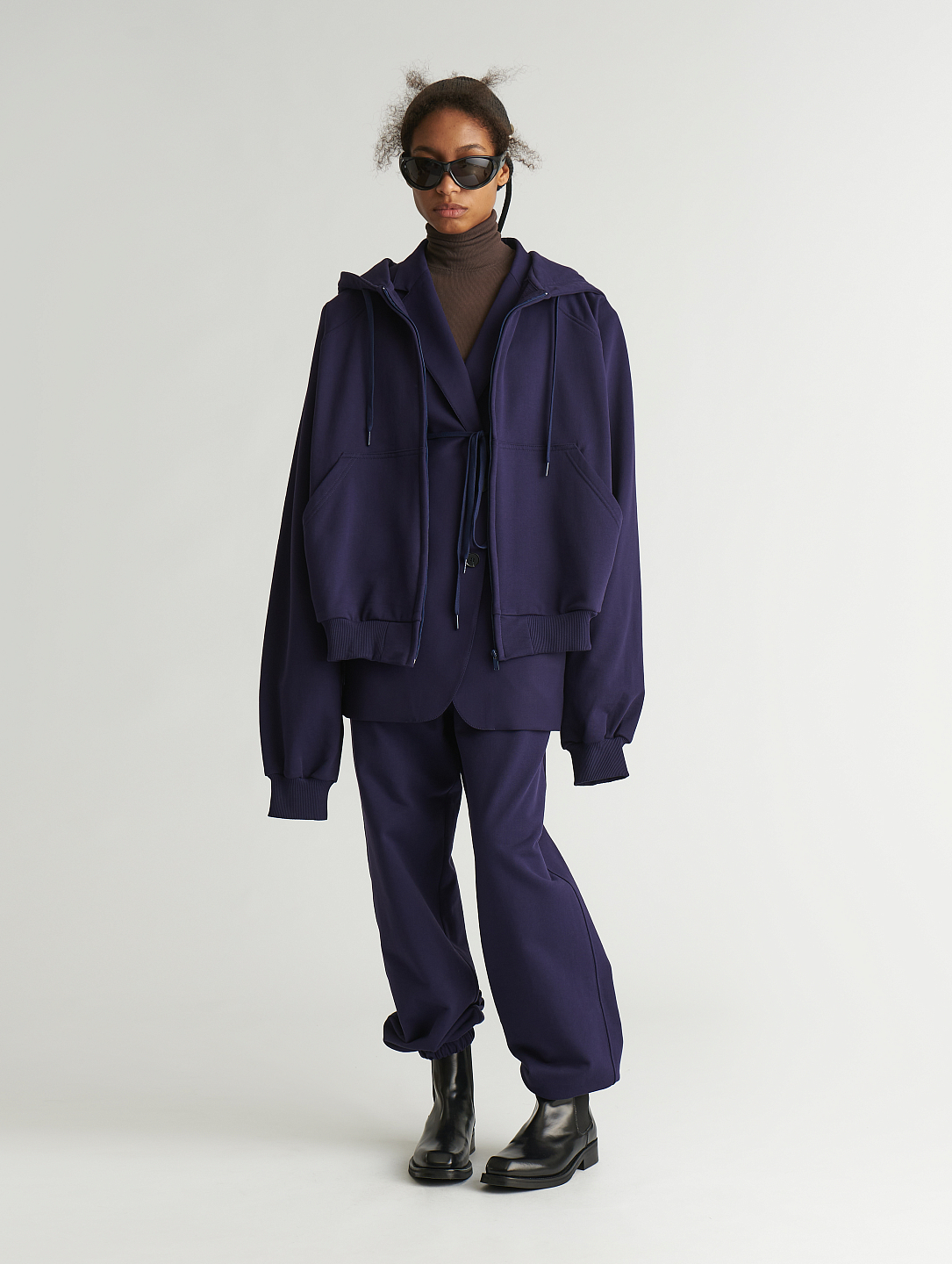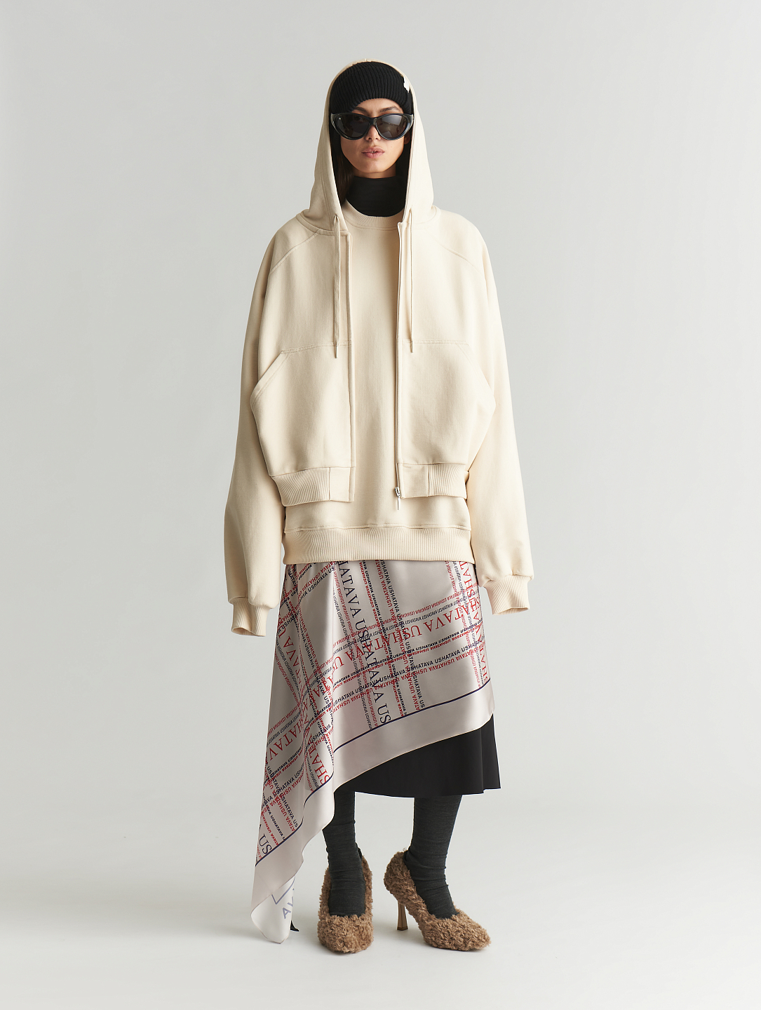 В сезоне FW23/24 GARDEROBE держит фокус на верхней одежде — один и тот же силуэт фигурирует в нескольких длинах, появляются двухсторонние пальто, новые тренчкоты, утепленные анорак и олимпийка. Одна из ключевых групп сезона — многофункциональные вещи-подложки, которые можно носить и как нижний слой, и как верхний. Также в сезоне присутствует новый для USHATÁVA цвет — чернильный, — и он проходит почти сквозь все категории вещей.