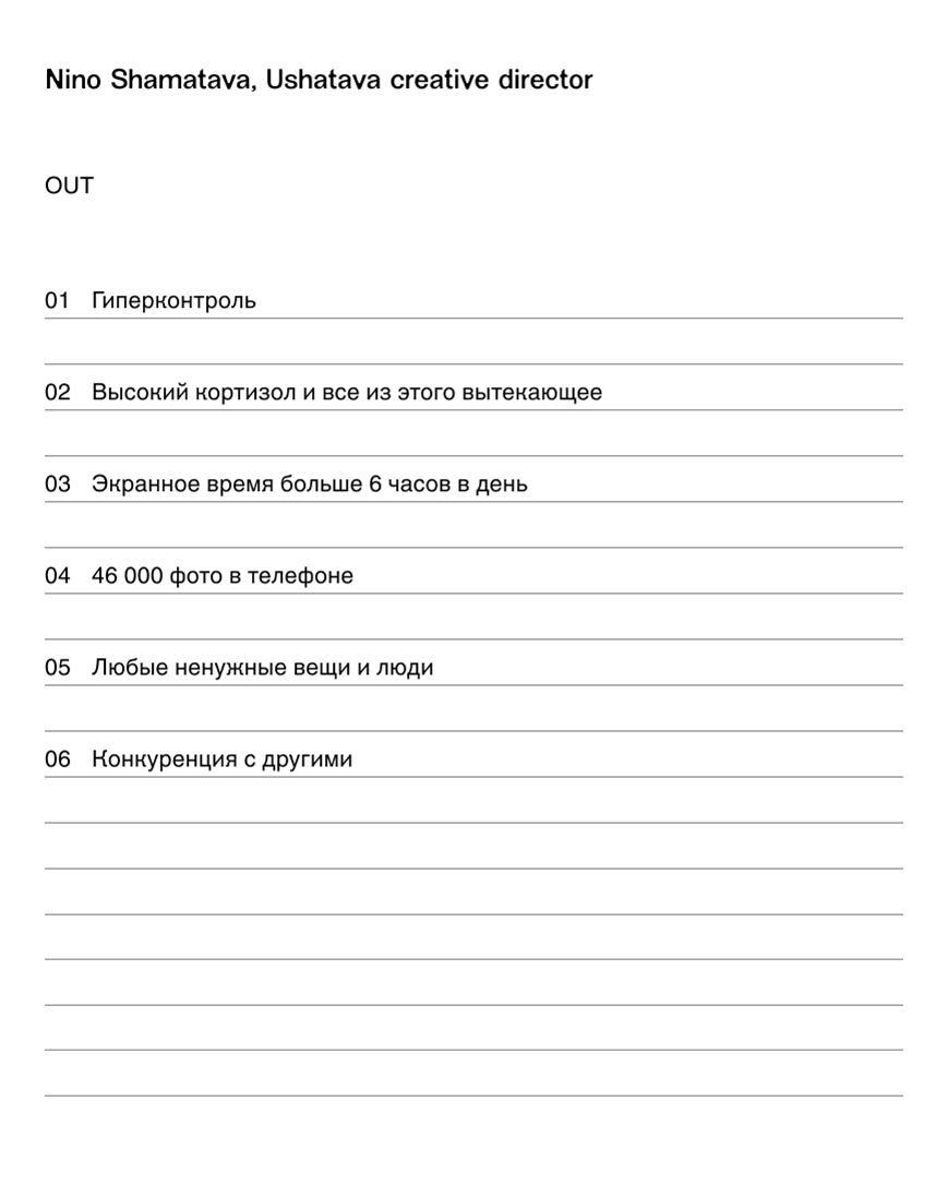 Подвести итоги года мы решили «по-зумерски» — в лаконичном формате In & Out. Основательницы модного Дома Нино Шаматава и Алиса Ушакова делятся личной рефлексией на тему того, что они берут с собой в 2026 год, а что точно оставят в 2025-ом. После прочтения предлагаем и вам взять листок бумаги, расчертить две колонки и зафиксировать себя в моменте.