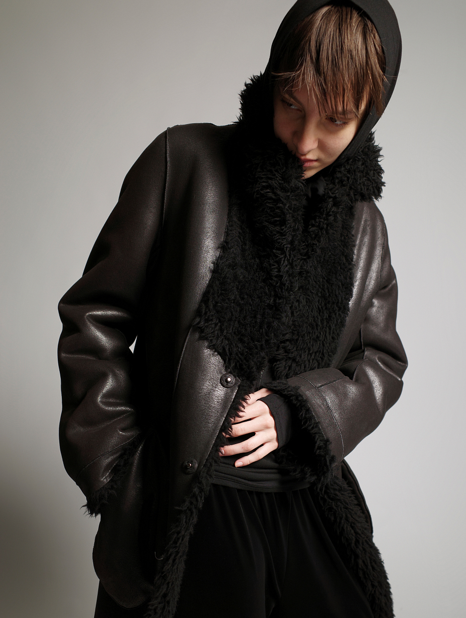 Двухсторонняя дубленка с английским воротником